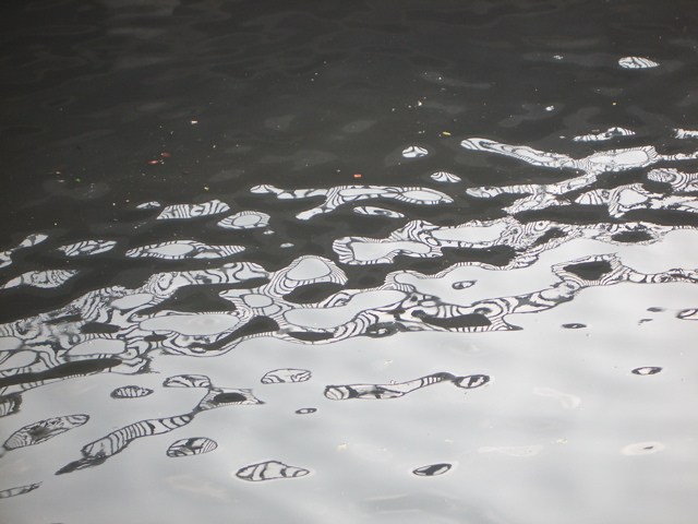 무늬, 범4호교와 성서교 두 다리까지 금융단지예정지이고 난간이 설치되어 있어 물에 반영되는데 물결이 거칠어지면 저런 필터 효과가 나타남.